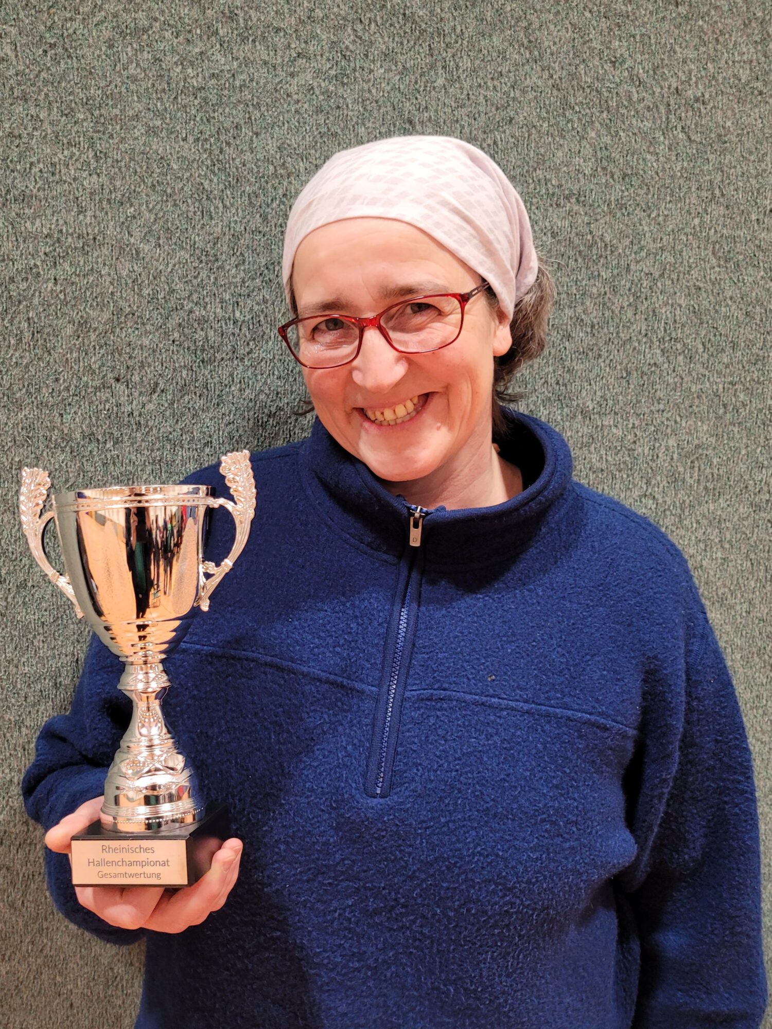 Am selben Abend fand die Gesamtsiegerehrung des 46. Rheinischen Hallenchampionats 2026 statt. Über sechs Turniere hinweg waren insgesamt 58 Herren und 23 Damen in der Blankbogenklasse am Start – Teilnehmerrekord für diese Klassen. Die Voraussetzung für die Gesamtwertung – jeweils zwei Starts über 18 Meter und zwei über 25 Meter – erfüllten letztlich nur drei Damen und 14 Herren.